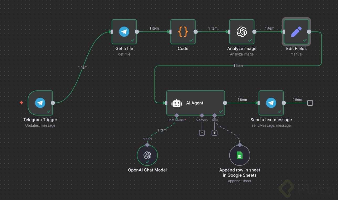 Finalmente, para verificar y mantener una comunicación efectiva alrededor de las tareas realizadas por el agente AI, se integra Telegram mediante: