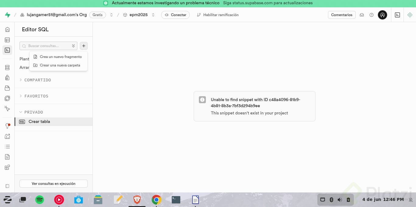 Primero es necesario estructurar correctamente bases de datos en Supabase. Este paso inicial consiste en copiar y ejecutar consultas específicas desde la interfaz.