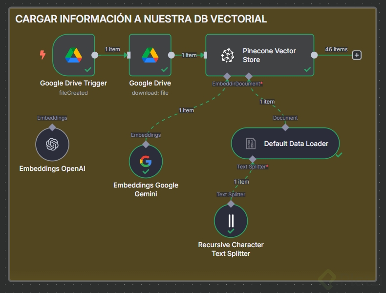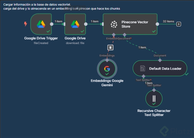 - Realiza un test inicial descargando datos de Google Drive y subiéndolos a la base de Pinecone.