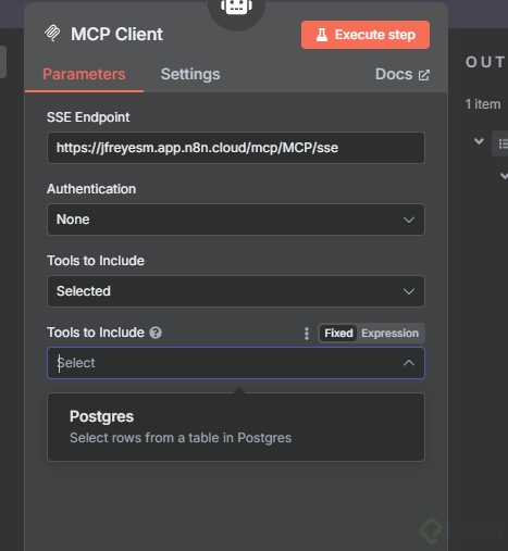 - Ve al apartado Tool, luego elige MCP client.
