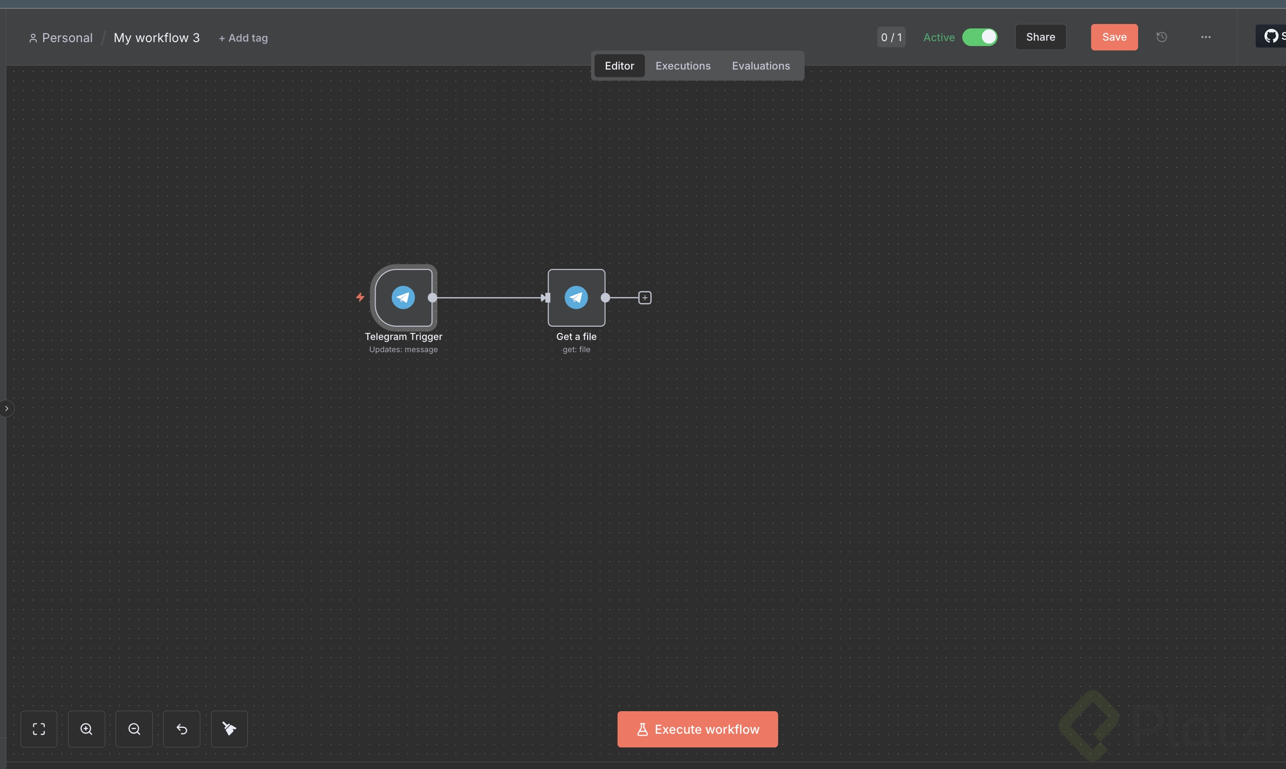 - Añade un "trigger" seleccionando la opción Telegram con la acción on message.