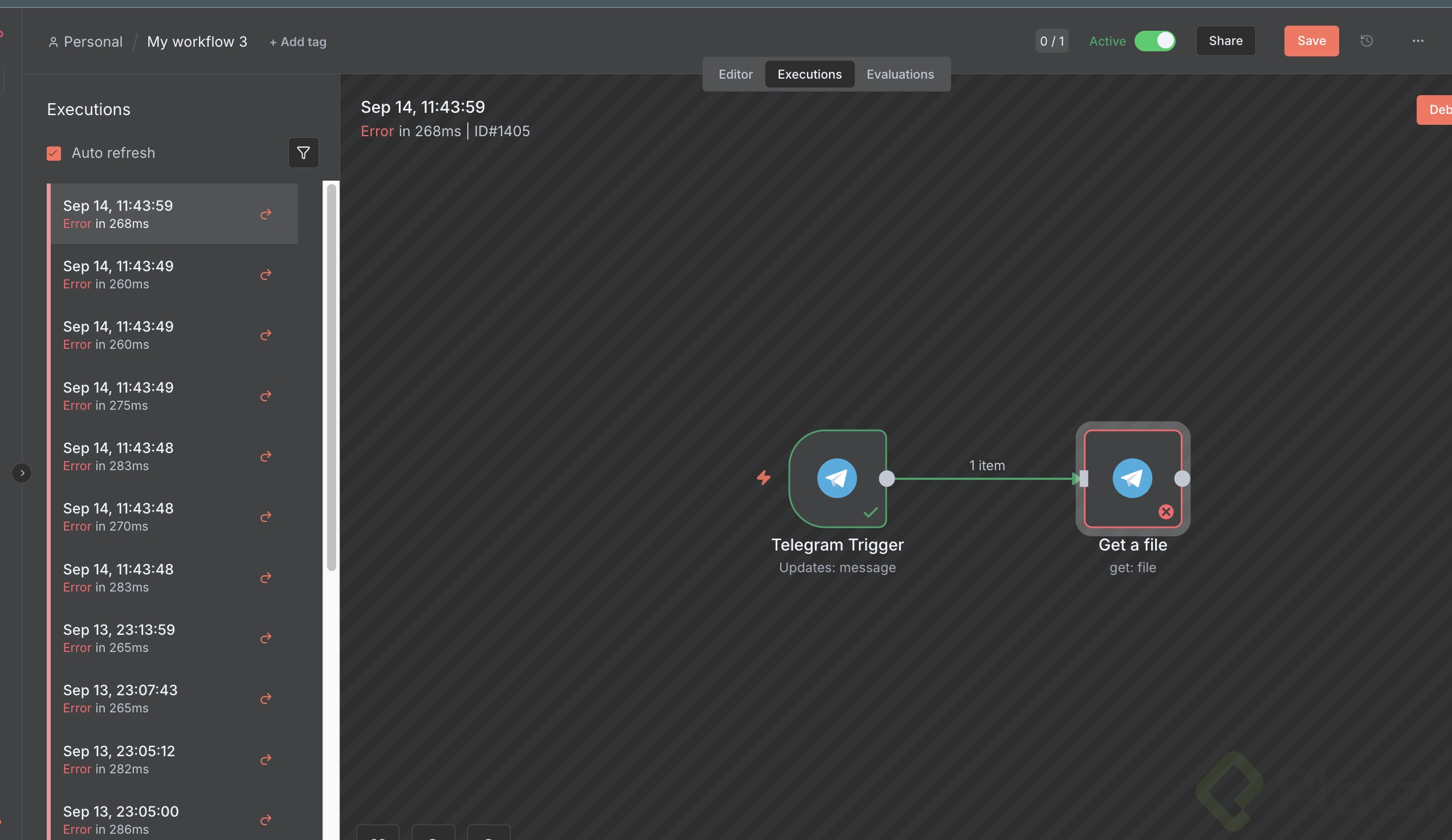 - Pega aquí el token obtenido anteriormente de Telegram al crear la credencial.