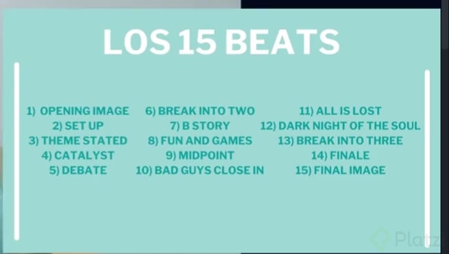 Save the cat: Pasos que realiza el protagonista para ser más empatico y conectar con la audiencia. Momentos y elementos, apaentemente insignificantes, que marcan la diferencia de lo que siente la audiencia por este personaje. tienen 15 Beats