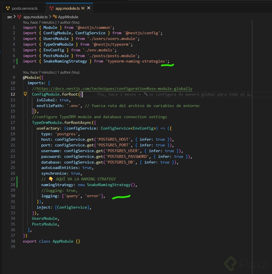 NestJS provee generadores que automatizan la creación del boilerplate típico de un CRUD. Así, al generar un recurso como "posts", el sistema crea: