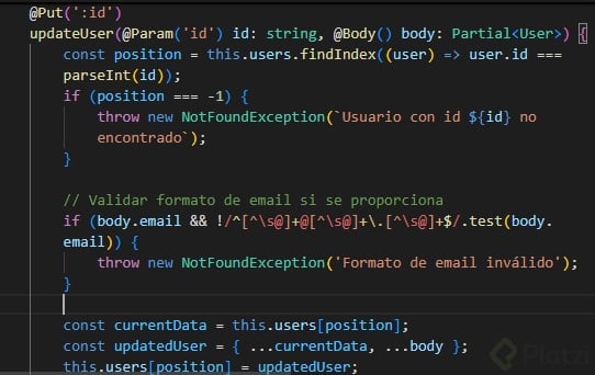 - La respuesta habitual es el usuario actualizado completo y un status 200.