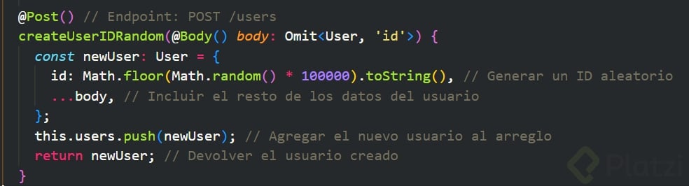 Se plantea el reto de autogenerar el ID de un usuario, evitando que se envíe manualmente en el body. Algunas alternativas para un array en memoria incluyen: