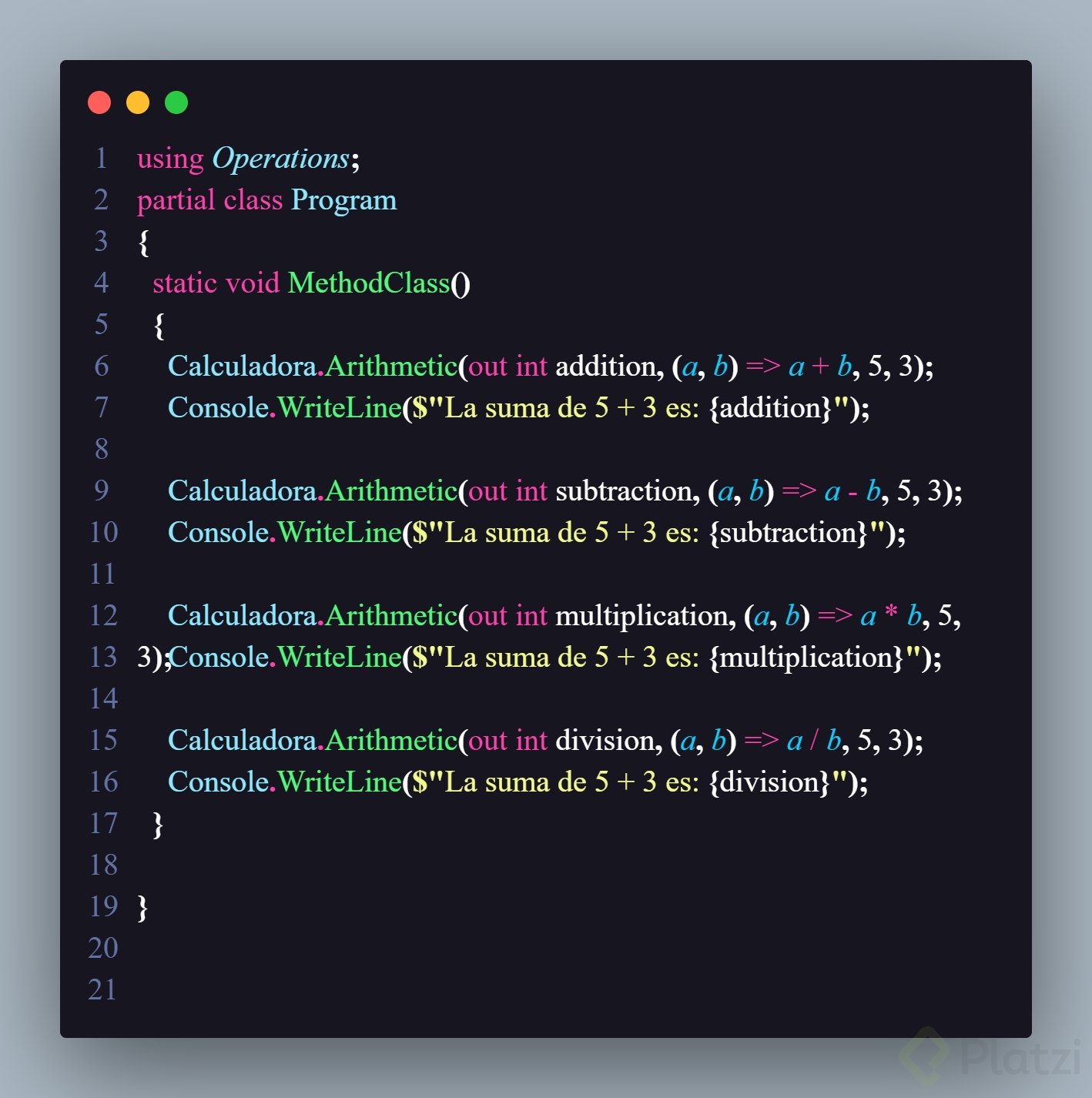 Luego, puedes crear una instancia u objeto de esta clase y acceder a sus métodos desde Program.cs: