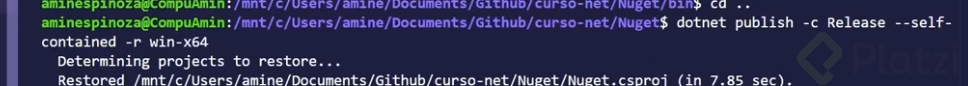 Esto generará en tu carpeta una estructura separada bajo bin/release/net8/win-x64, suministrando un archivo ejecutable independiente, como nuget.exe, el cual puede ser copiado y usado en otras computadoras sin necesidad de instalar el entorno de desarrollo completo.