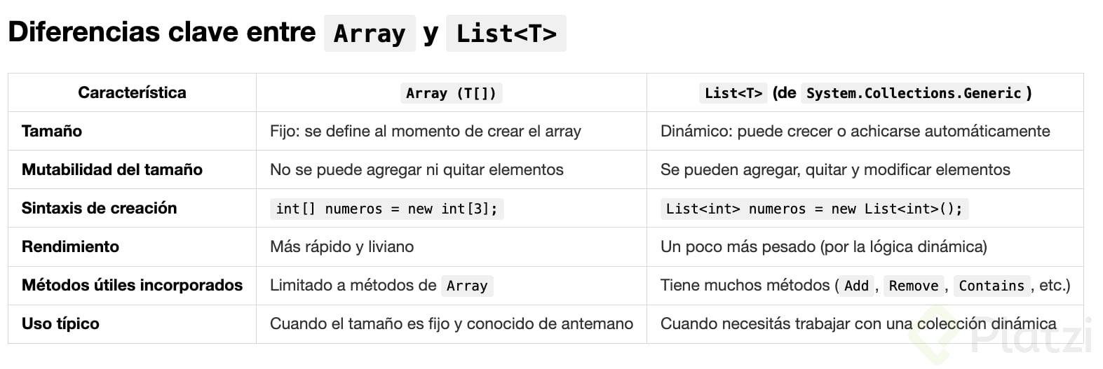 Diferencia entre arreglos y listas en C#