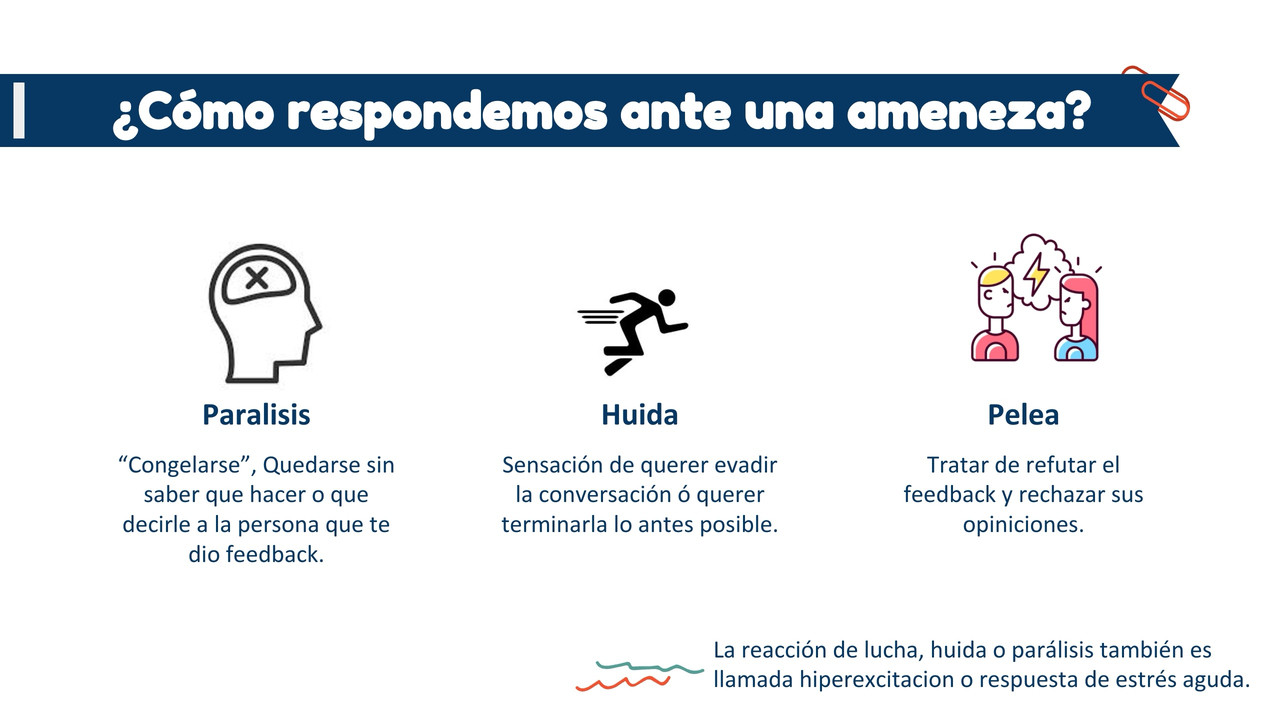 Cuando recibimos feedback nuestro organismo tiende a interpretarlo como una amenaza, como tal, el cuerpo emite rápidamente una respuesta que puede ser de 3 tipos distintos: parálisis, huida o pelea.