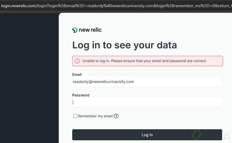 Name Description Email readonly@newrelicuniversity.com Password o11y-as-code -