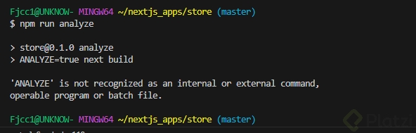 Esta configuración envuelve la configuración de Next.js, permitiendo que el análisis se realice solamente cuando la variable de entorno ANALYZE esté activa.