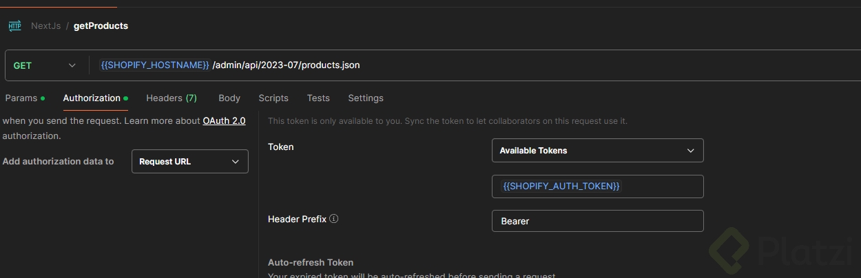 - Incluye headers específicos de Shopify, especialmente el de autenticación, usando las variables de entorno configuradas.
