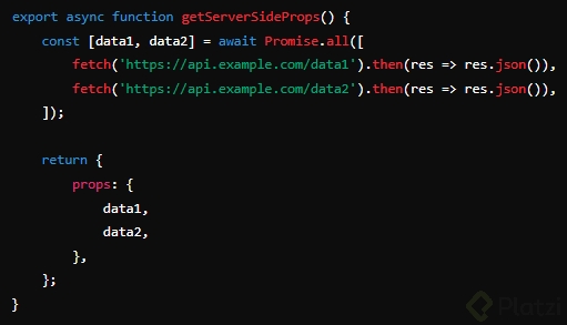 Fetching paralelo: Permite realizar múltiples solicitudes al mismo tiempo, sin que una dependa de la otra. Es ideal para obtener datos que no están relacionados o bloqueados entre sí, como en el caso al obtener productos y colecciones por separado. Esto mejora el tiempo de respuesta de tu aplicación.