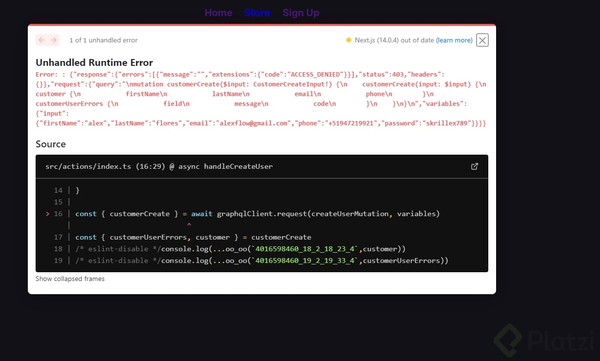 Una vez configurado tu cliente de GraphQL y definido el formulario para capturar los datos del usuario, es hora de probar si la creación de cuentas se ejecuta sin errores.