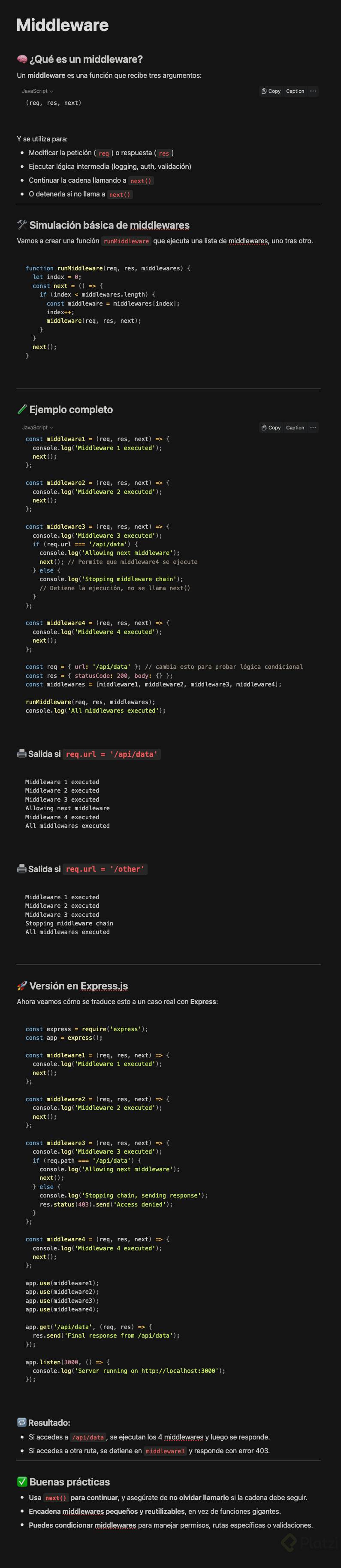 Al lanzar este script, verás en la consola los mensajes indicando la ejecución secuencial de cada middleware.