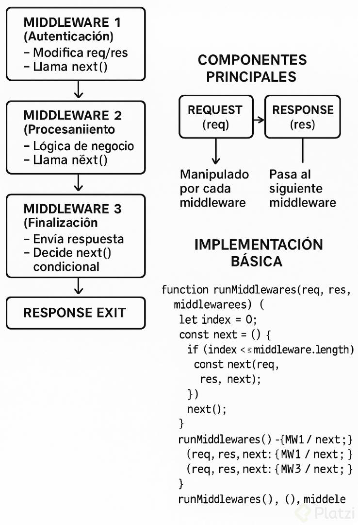 - Ejecuta cada middleware incrementando un índice para avanzar en la secuencia.