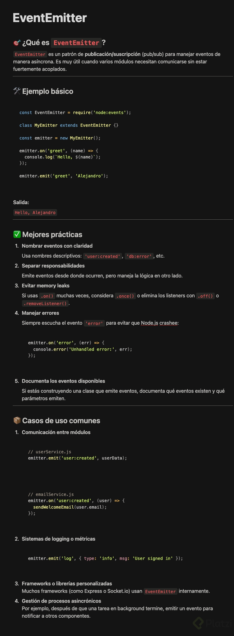 Esta clase UserNotifier extiende al objeto EventEmitter, obteniendo automáticamente las funcionalidades para emitir y escuchar eventos.