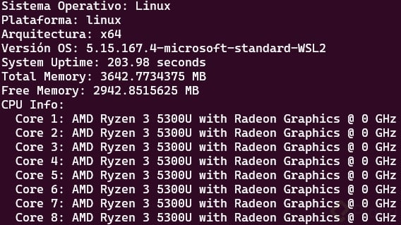 Acceso y uso del módulo OS en Node.js para monitoreo del sistema
