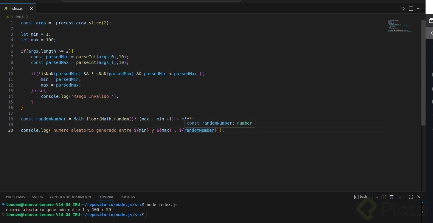 La programación en Node.js te permite aplicar tus conocimientos de JavaScript en un entorno de servidor, ampliando enormemente las posibilidades de lo que puedes crear. Este primer programa es solo el comienzo de tu viaje con Node.js. ¿Te animas a modificarlo para que no muestre un número aleatorio cuando el rango proporcionado es inválido? ¡Comparte tus soluciones y experiencias en los comentarios!