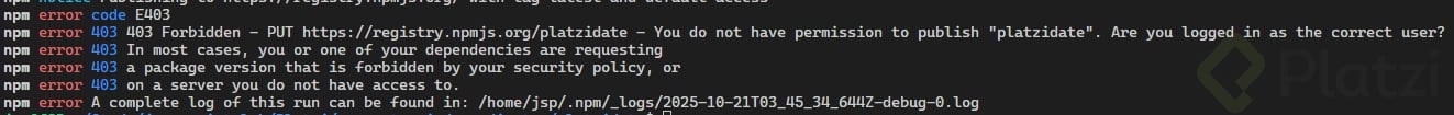 El sistema te pedirá autenticarte nuevamente (posiblemente con doble factor de autenticación), y luego procederá a publicar tu paquete en el registro de NPM.