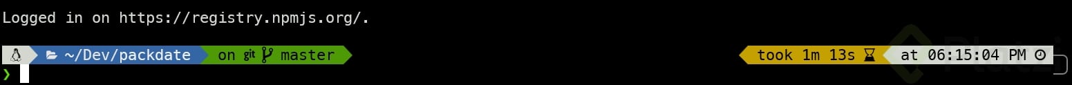 Una vez autenticado, podrás regresar a tu terminal donde verás confirmación de que estás logueado correctamente en tu cuenta de NPM.