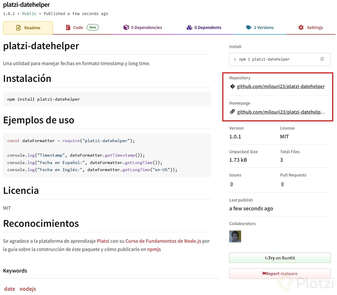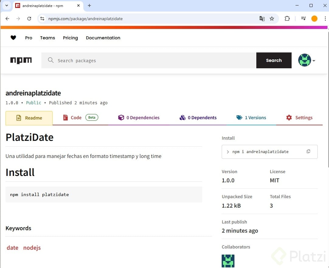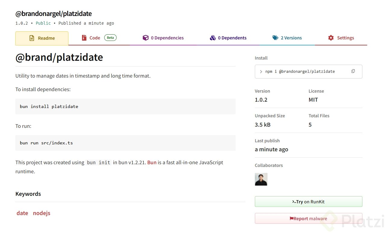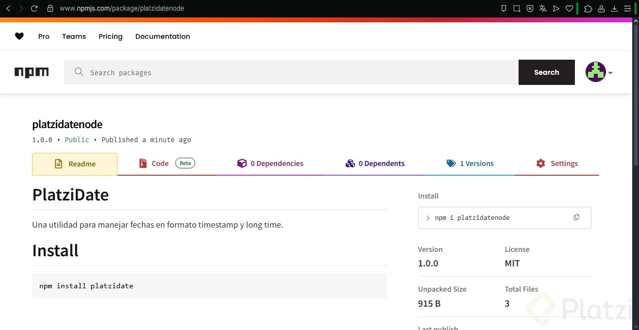 Una vez completado el proceso de publicación, puedes verificar que tu paquete está disponible visitando el sitio web de NPM. En tu cuenta, en la sección de paquetes, podrás encontrar el que acabas de publicar.