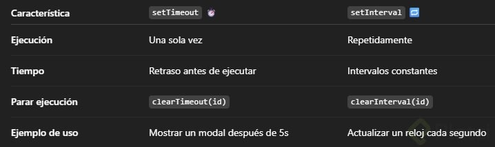Cuando necesitamos ejecutar código repetidamente a intervalos regulares, setInterval es la herramienta adecuada:
