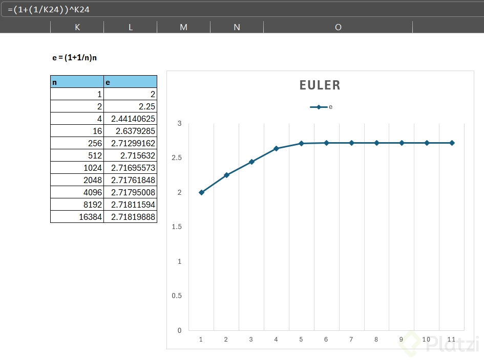 Una de las formas de obtener el valor de Euler es usando la fórmula del Interés Compuesto: