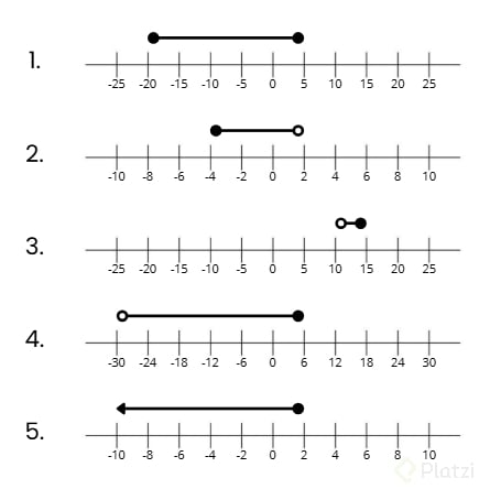 | [a,b) | a ≤ x < b | x puede tomar cualquier valor desde a y menor a b. |