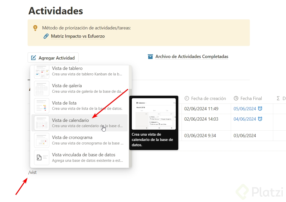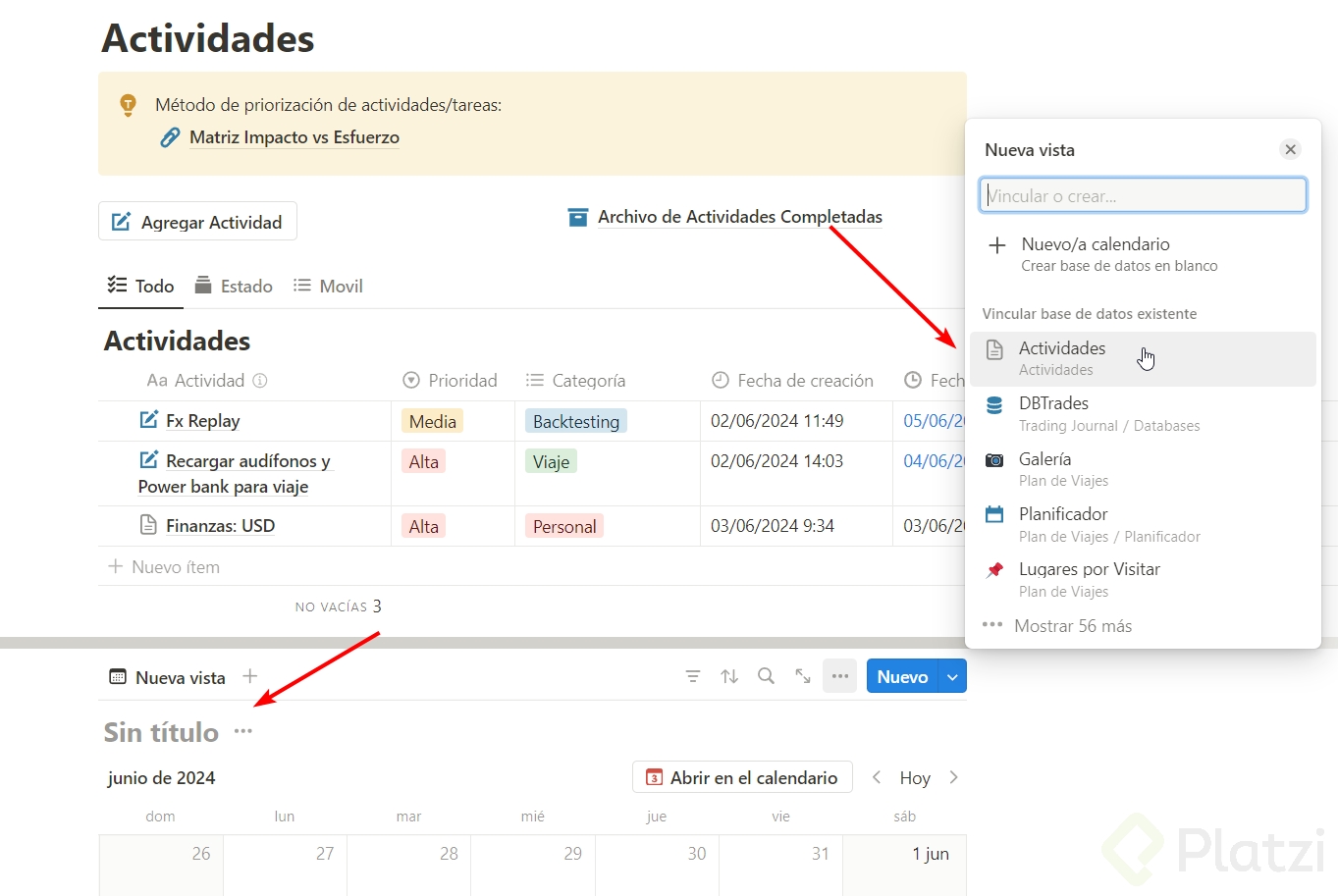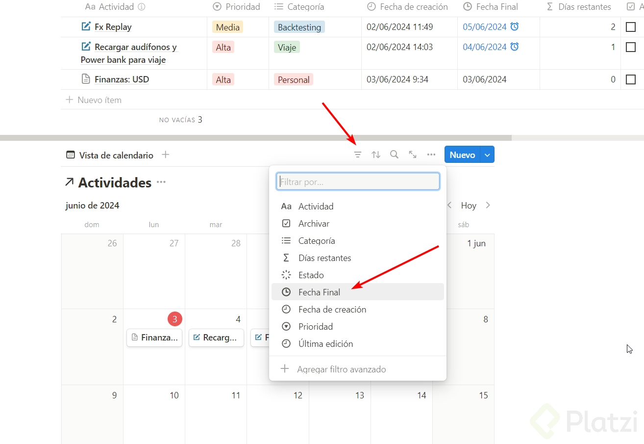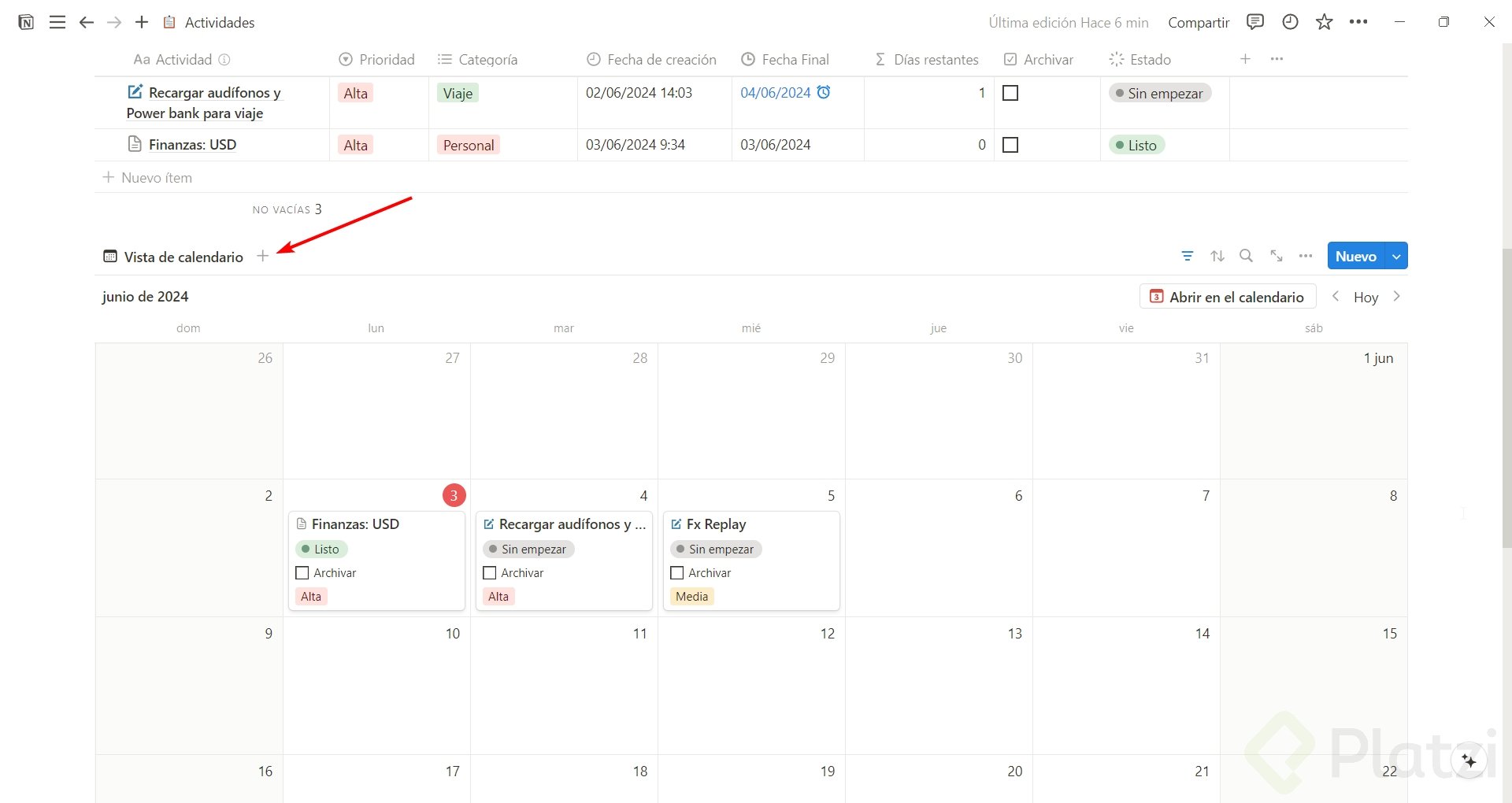 - Editar en Notion permite un acceso visual al calendario organizado por fechas de entrega.