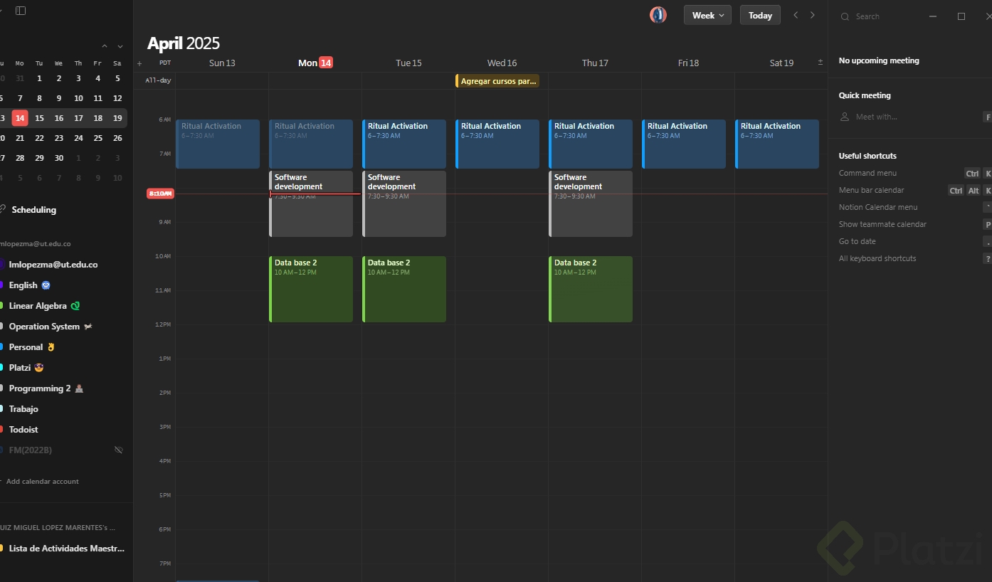 - Calendario de eventos con horarios fijos: Ideal para clases, compromisos, sesiones de estudio y hábitos.