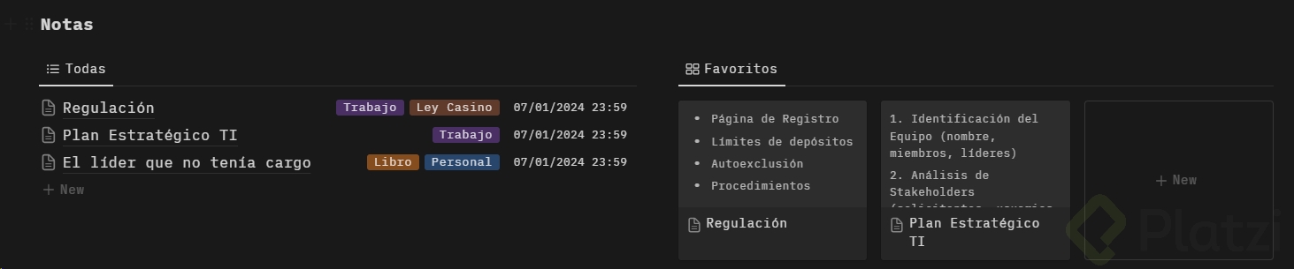 Checkbox de Favoritos: Implementa esta propiedad y utilízala para señalar aquellas notas que requieren de tu atención continua.
