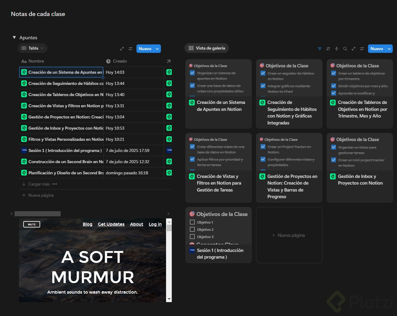 Te animamos a aplicar estas tácticas en tu Second Brain dentro de Notion, integrando las notas más relevantes y organizando datos de manera que siempre estén a tu alcance. ¡Sigue construyendo esta herramienta y maximiza tu aprendizaje de cada curso!