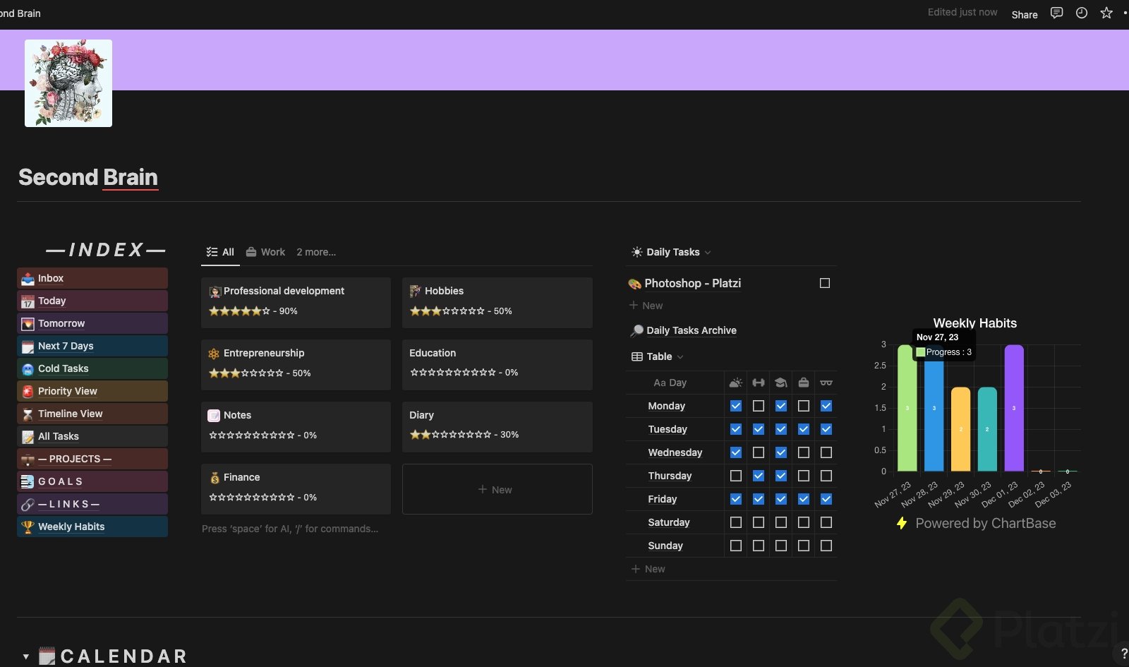 Introducción a Notion1Curso Completo de Notion: Crea tu Segundo Cerebro y Live Wiki03:30 min2Creación de CV en Notion paso a paso14:10 min3Planificación y Diseño de un Second Brain en Notion12:28 min
