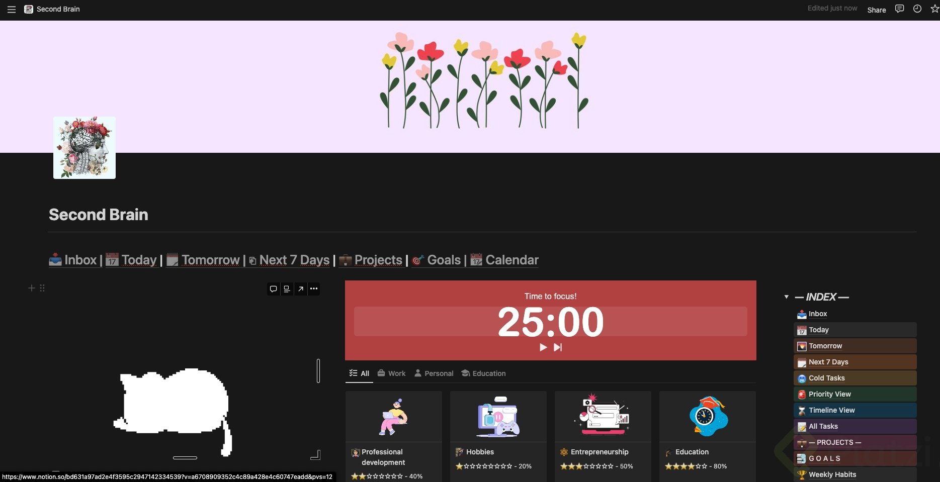 • Sección de inicio: Destina una parte de tu página de Notion como el área principal de widgets, lo primero que veas al iniciar.