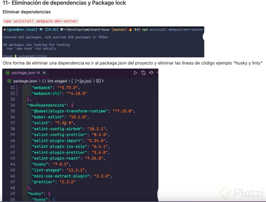 Eliminación de dependencias y Package lock