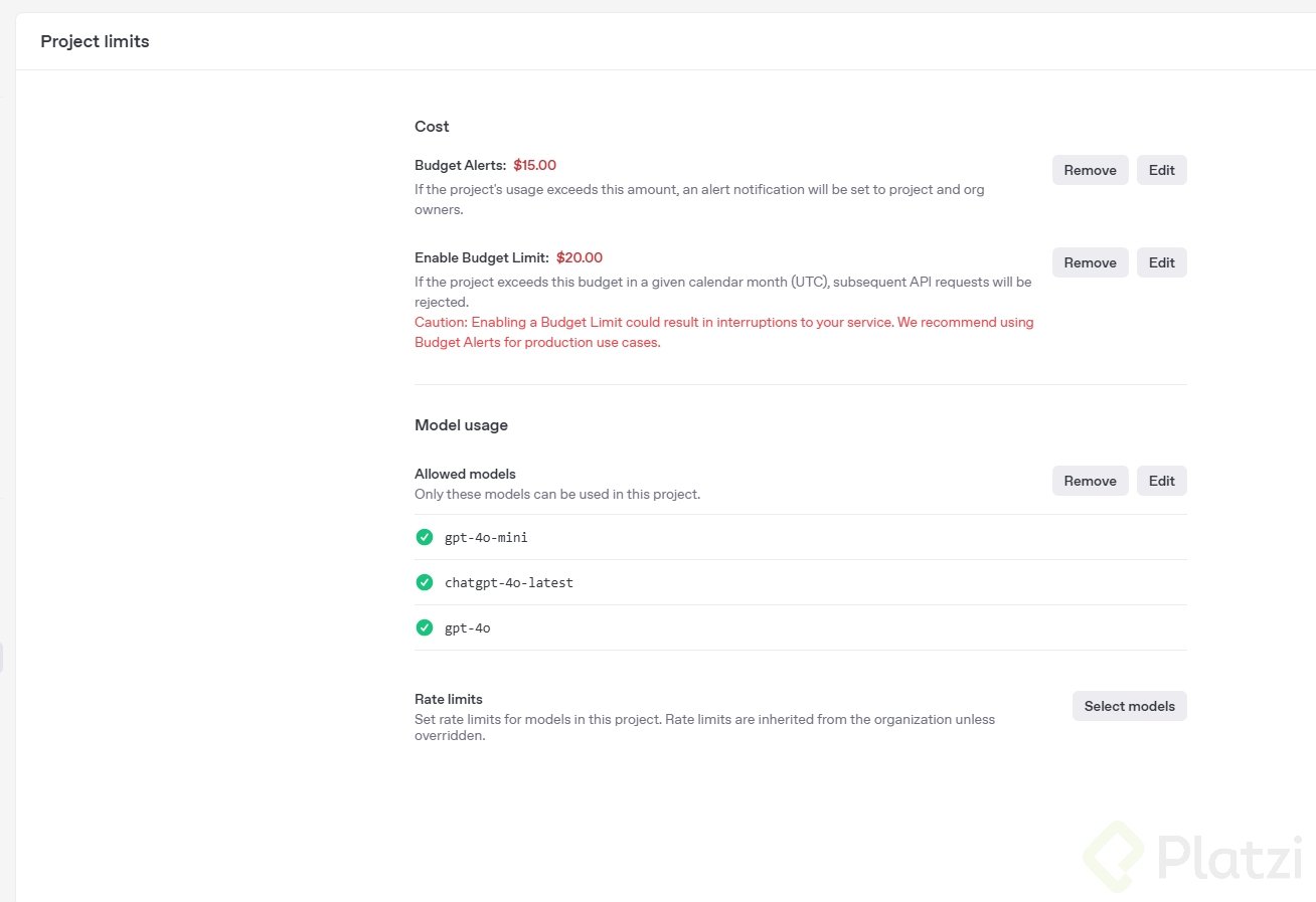 Los servicios de OpenAI generan costos dependiendo de su uso. Por lo tanto, es vital establecer presupuestos y límites para evitar facturas inesperadamente altas: