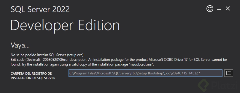 En este momento ya tenemos instalado el motor de la base de datos. Lo siguiente es instalar el SQL Management Studio. En esa misma pantalla seleccionamos el botón que dice Install SSMS y nos va a llevar a la pantalla donde podemos descargar el programa, el cual es el mismo que te dejé en la clase anterior. Simplemente lo descargamos e instalamos con la configuración básica.