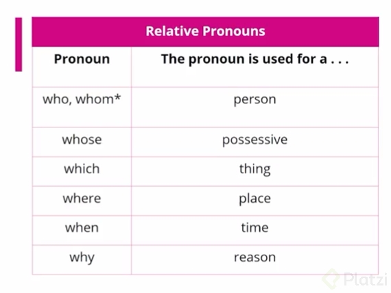 Para aportar más información a una determinada cosa en una oración, podemos hacer uso de pronombres relativos dependiendo la situación.