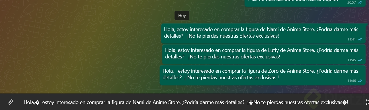 Para hacer que tus mensajes sean aún más atractivos, puedes solicitar a ChatGPT que genere un mensaje que incluya emojis y una invitación a comprar. Por ejemplo, un mensaje personalizado podría verse así: