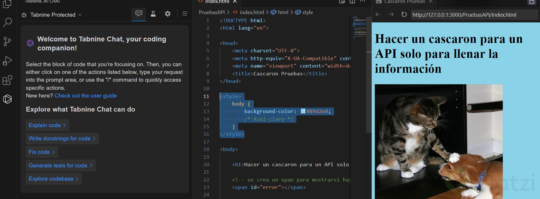 - Accede al chat de Tabnine para comenzar a dar instrucciones.