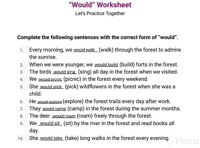Estos patrones muestran cómo 'would' puede reflejar esas acciones recurrentes que formaron parte importante de nuestras rutinas.