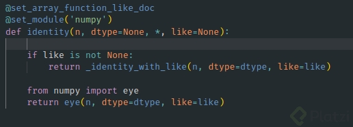 Este método de NumPy nos permite generar arrays sin definir previamente una lista.