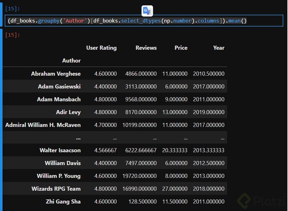La columna Author, en los casos anteriores, pasa a ser el índice.