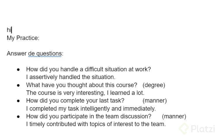 Para mejorar tu habilidad con los adverbios, es útil practicar a través de ejemplos reales. Aquí tienes algunas preguntas para reflexionar y responder usando adverbios de modo o grado: