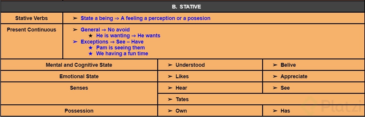 Possession: verbos que indican lo que alguien posee, sin expresar una acción [3:30].