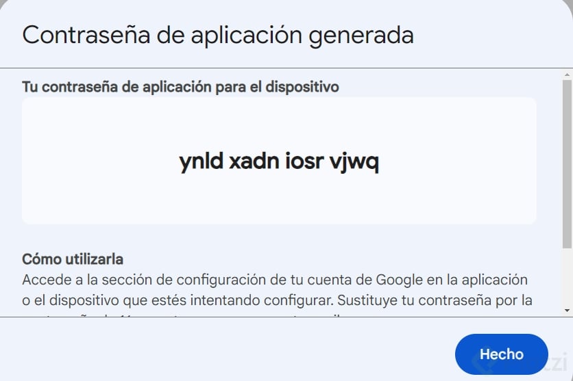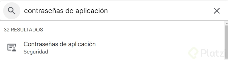 - Crear una contraseña de aplicación desde la sección de seguridad de tu cuenta de Google.