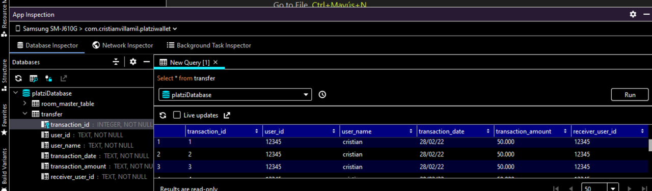 val transfers = transferDao.getTransfersForUser("PlatziUser")