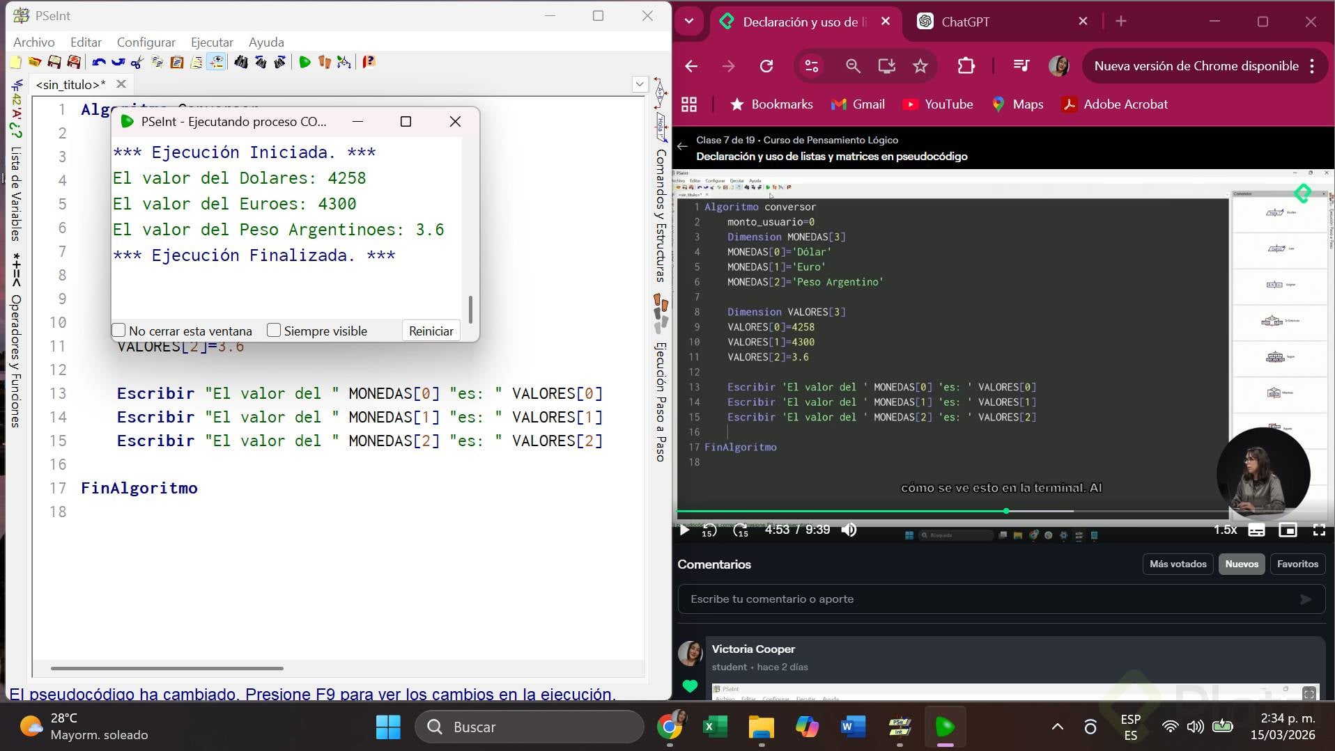 Recuerda asegurarte siempre que las configuraciones iniciales del pseudocódigo tienen activo el conteo de índices desde cero para evitar errores frecuentes.